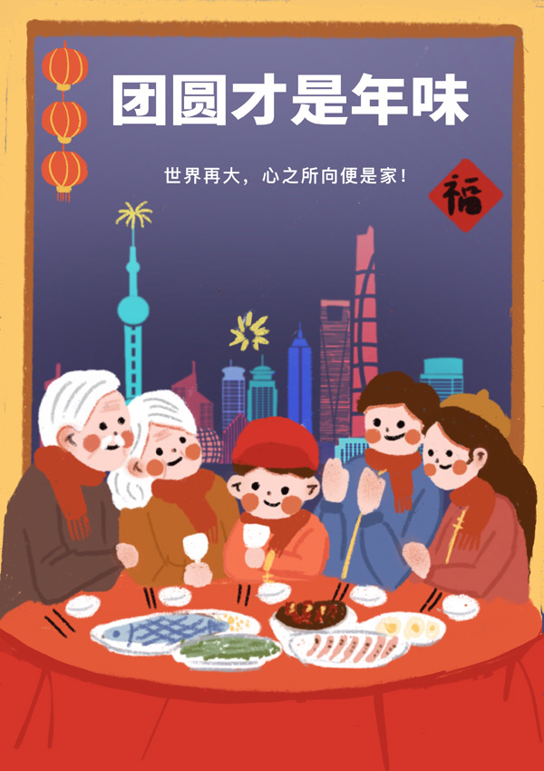 春晚、窗花、烟火、爆竹、灯会……这些都是“年”的元素,可那一缕真正的“年味”在团圆餐桌上。世界再大,也不及平安回家的幸福来得实在。也正应了那句“有钱没钱,回家过年”。在除夕夜,与家人围坐在一起吃年夜饭是我们简单的“小幸福”,而这“小幸福”背后却是无数的“大奉献”。
