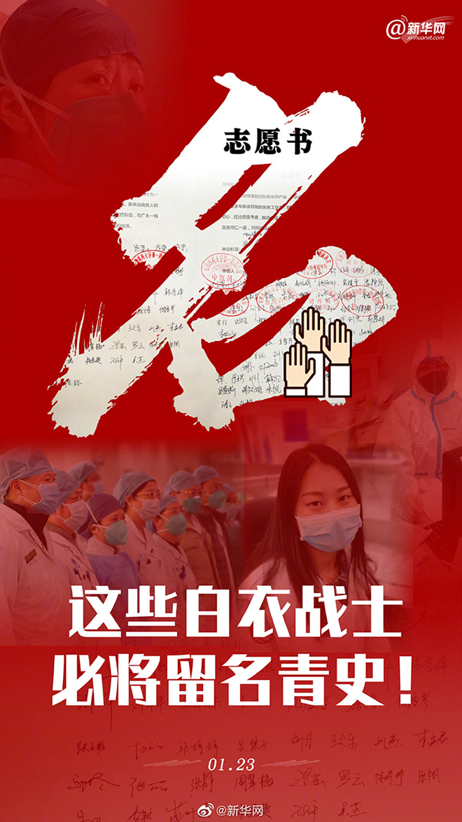 “我深知这场战役的艰巨性”“下一站天门南,我下车回武汉”“我报名”……新型冠状病毒肺炎疫情防控形势严峻,不断攀升的数字让人揪心、痛心。但这些天,全国各地那些医护人员的话,常常让我们热泪盈眶!1月23日,又见安徽百余名医护人员在志愿书上签名,请求去一线抗击新型肺炎。张慧、孙朋、刘平平、沈佳佳、方芳……一个个普通的名字,却让人肃然起敬!他们也是普通人,也是某个人的父母或孩子。但现在,他们是医生,是护士,是白衣战士!这场战役必将胜利,也请你们务必好好保护自己,平安归来。