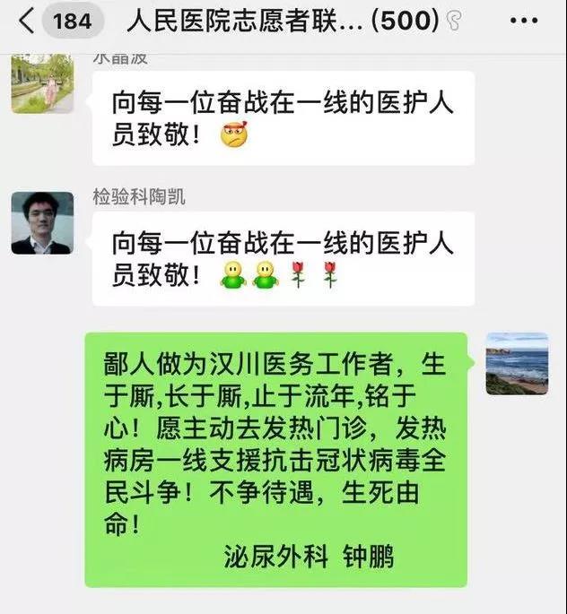 在长航总医院担任主任护师的台盟盟员郑园,早在疫情还未蔓延开时就一直工作在第一线,笔者之前从断断续续的聊天中得知她的工作量大,工作强度高,在1月22日简单回复了一句“在一线,非常忙”后,郑园就再无暇顾及微信消息。郑园是个言语不多,只做实事的人。连续四年,郑园都参加台盟湖北省委会、省台联开展的两岸同心红十字义诊,每次义诊时,她都用丰富的医护经验为参加义诊的台湾同学提供帮助。这次她简短质朴的话语,和往常一样没有赘言却令人心安。白衣天使的守护,让我们在面对疫情时,有信心、有希望、有依托!
