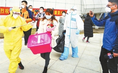△资料图:2月6日湖北省中西医结合医院18位新冠肺炎患者康复出院