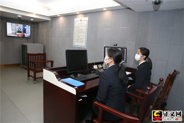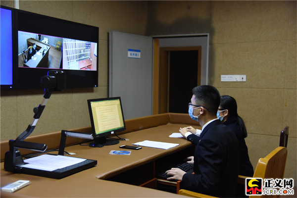 南京市江宁区检察院检察官通过远程提审系统讯问犯罪嫌疑人。