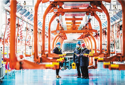 日前,贵州省铜仁市万山区供电局员工在万仁汽车集团总装车间进行生产设备用电检查,为企业复产提供支持。 彭 俊摄