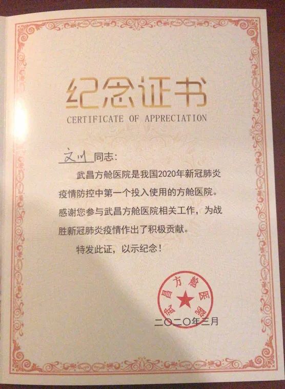 △文川收到的纪念证书