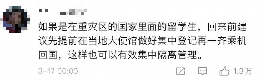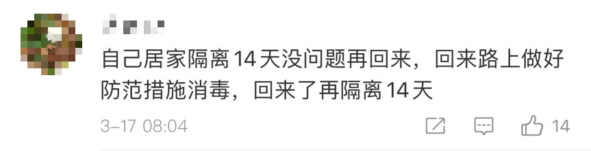 有的网友则认为,回国途中会增加染病风险,也容易增加无症状患者带来输入性交叉感染的风险。↓↓↓