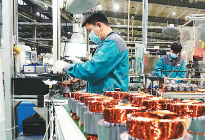 近来,河北省秦皇岛经济技术开发区在做好疫情防控工作的前提下,引导企业有序复工复产。截至3月12日,该区144家规模以上企业全部复工复产。图为秦皇岛经济技术开发区一家机电设备生产企业的工人在生产线上工作。
