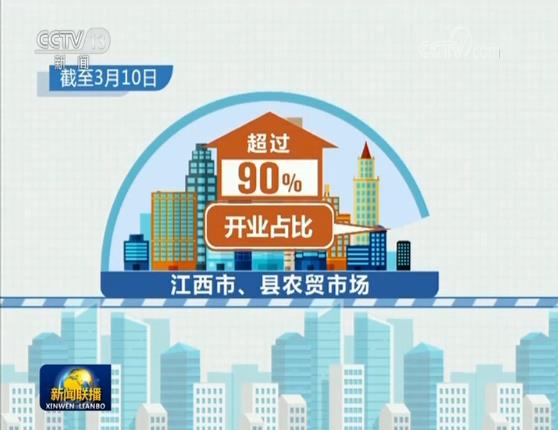 一项项政策,换来的是江西商贸服务业复产复工不断提速。截至3月10日,江西市、县农贸市场开业占比超过90%,连锁便利店门店开业占比达85.1%。