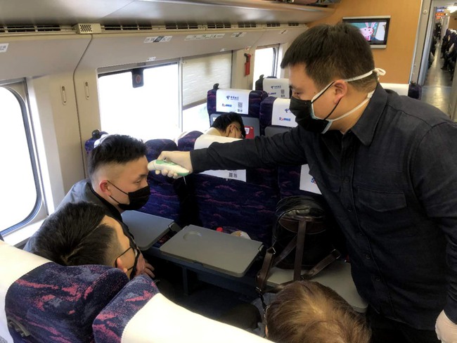 列车上依次测量体温。宣方均 摄