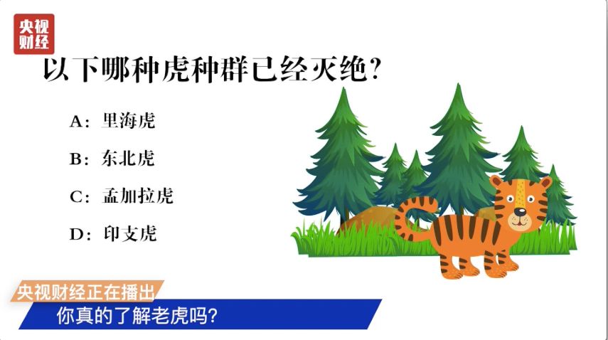 首先,我们做了一个问卷调查,问题是:以下哪种虎的种群已经灭绝?
