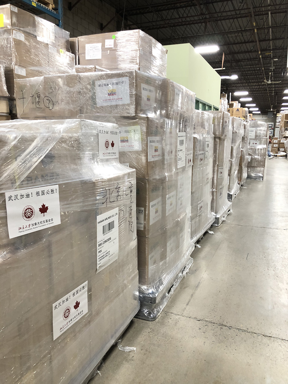 北京大学加拿大校友基金会捐赠物资支援祖国抗疫。 本文图片均由受访者提供