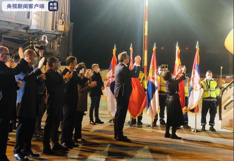 当地时间3月21日19时30分,中国援助塞尔维亚的6人专家医疗队抵达塞尔维亚贝尔格莱德尼古拉·特斯拉国际机场,随着专机带来的有中国政府紧急筹集的十几吨的呼吸机、口罩、试剂盒等防疫物资。塞尔维亚总统武契奇、卫生部长、国防部长等多位政府官员在停机坪等候,武契奇与医疗队成员一一碰肘,表示热烈欢迎和由衷感谢。