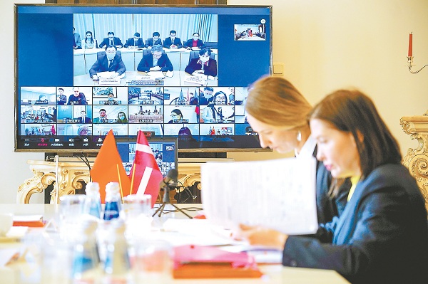 日前,中国同中东欧17国举行新冠肺炎疫情防控专家视频会议,分享和交流疫情防控经验及信息。这是中国秉承人类命运共同体理念,为全球公共卫生安全事业作贡献的又一重要举措。图为拉脱维亚卫生专家在中国驻拉使馆参加视频会议。 新华社发(亚尼斯 摄)