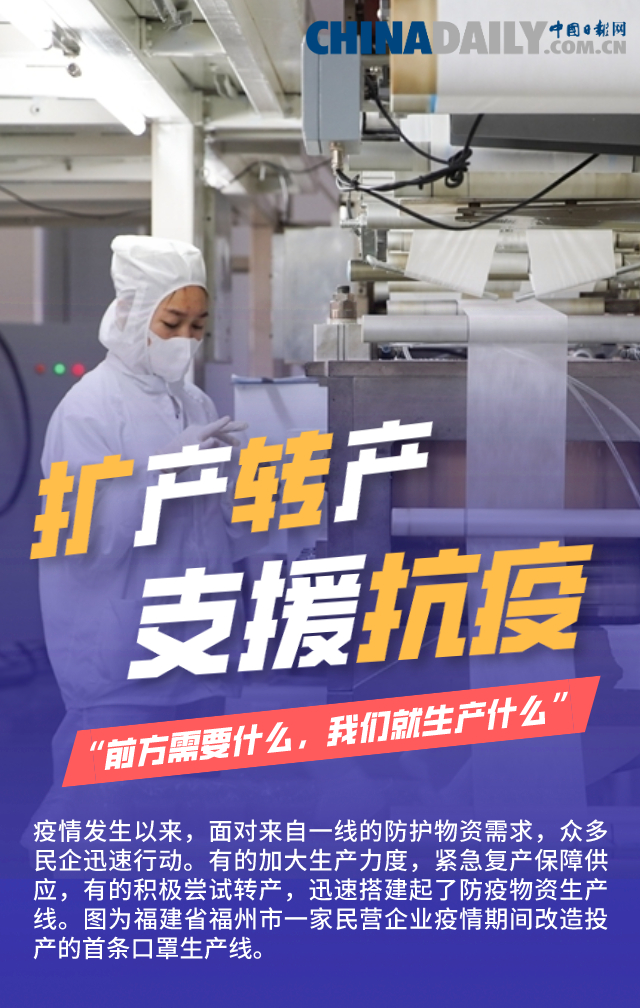 “前方需要什么,我们就生产什么”,“努力复工,我们稳住阵地”,“疫情当前,我们全力参与支援”,“让创新给我们提供源源动力”……民营企业用自己的实际行动,为抗击疫情稳定经济做出了贡献,也充分向我们展示了他们的责任感与担当。