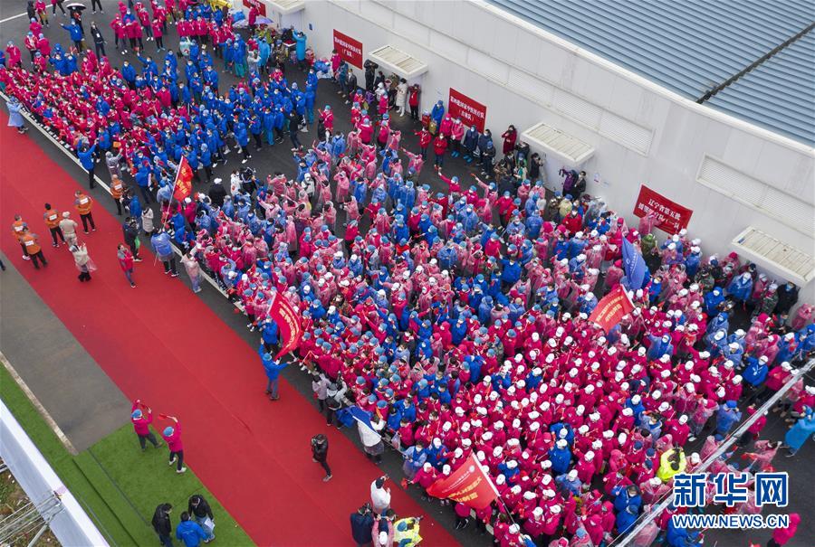 武汉雷神山医院送别千余名医护人员