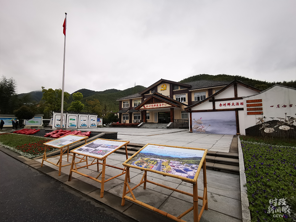 △余村党群服务中心坐落在群山环抱中。(总台央视记者张晓鹏拍摄)