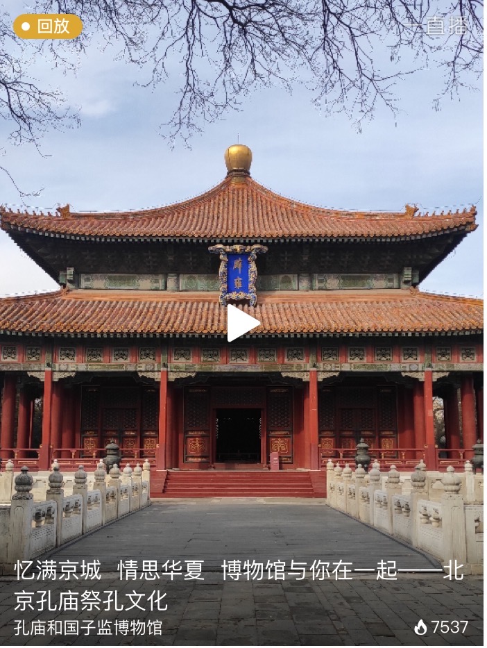 4月5日,北京鲁迅博物馆联手淘宝网举办“清明时节怀鲁迅”线上直播活动,向伟大的文学家、思想家、革命家鲁迅先生致敬,直播观看量约17万人次。中华世纪坛艺术馆推出“思时之敬,弘扬传统节日文化”云忆先贤直播活动,直播中运用5G+MR技术,令观众足不出户就感受到清明节这个中国传统节日所包含的厚重文化,直播累计点赞量5万次、观看量10万人次。孔庙和国子监博物馆推出清明专题线上活动——北京孔庙祭孔文化直播,邀请观众跟随馆内的优秀讲解员一起云游博物馆,了解北京孔庙的祭孔文化。