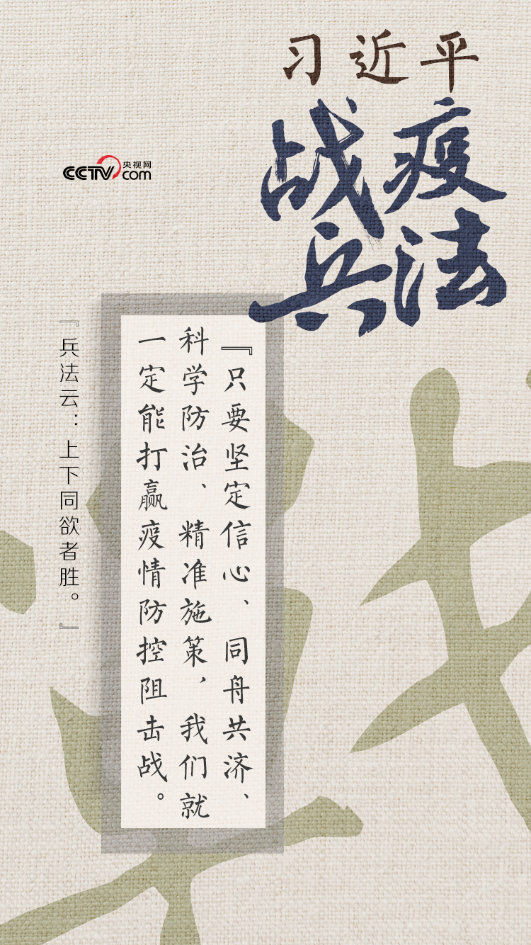战“疫”形势波谲云诡,战“疫”部署科学缜密,战“疫”士气可鼓不可泄。疫情发生以来,习近平始终保持清醒头脑,根据疫情形势作出科学研判,与全国人民一起坚定必胜信心,保持昂扬斗志,同仇敌忾。