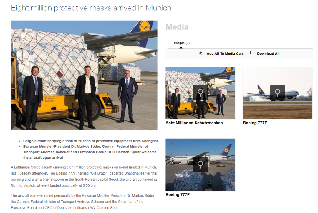 而在此轮新签订的订单之前,中国对德国防疫物资的供给一直都在持续着。