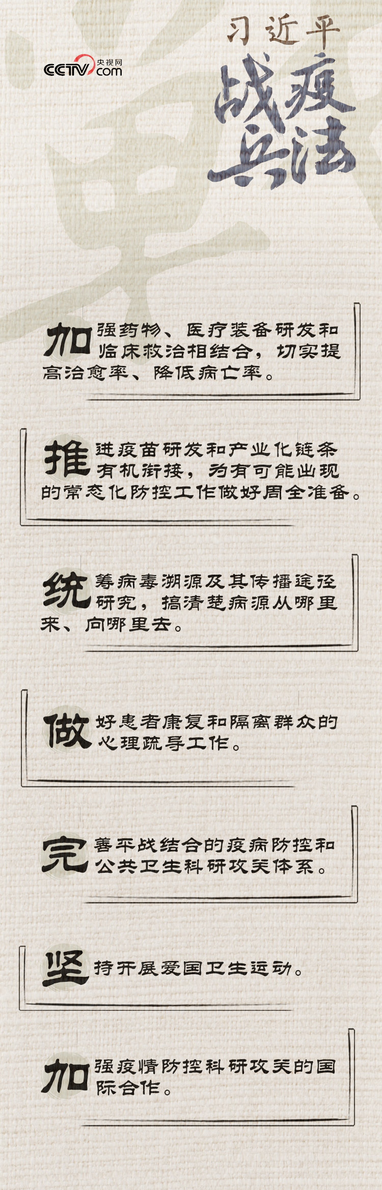 习近平从疫情防控之初就将科学防控放在了重要位置,从“坚定信心、同舟共济、科学防治、精准施策”的总要求,到“加大科研攻关力度”的反复叮嘱,再到“搞清楚病源从哪里来、向哪里去”的关切,科学防控始终是习近平战“疫”部署的一条鲜明主线。