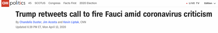 △美国有线电视新闻网(CNN):特朗普转发要求解雇福奇的推特