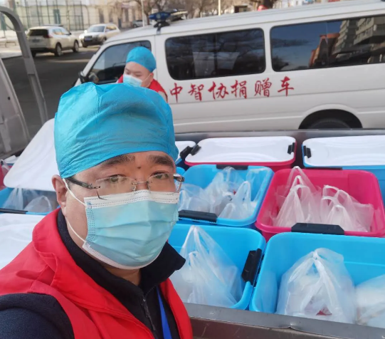 一天三次五个地方他为医护人员义务送餐