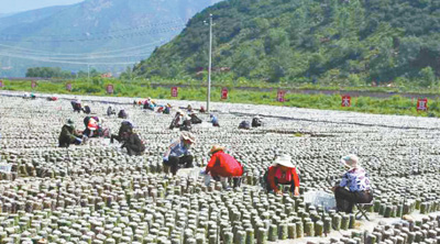 和顺县白仁村以及周边乡村的村民在木耳基地劳作。