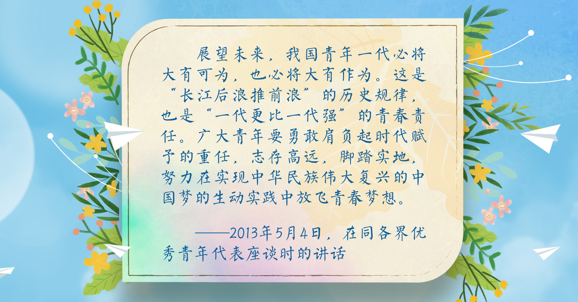 青年是祖国的未来、民族的希望。习近平总书记一直以来都十分重视青年工作,他常常鼓励青年追求梦想、努力奋斗。“青年最富有朝气、最富有梦想”“好儿女志在四方,有志者奋斗无悔”“中华民族伟大复兴终将在广大青年的接力奋斗中变为现实”。总书记的谆谆教诲犹如一本成长指南,引领新时代青年走好人生之路。