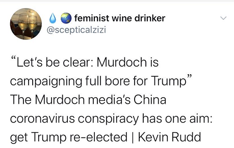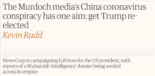 △陆克文撰文《默多克新闻集团关于中国的新冠病毒阴谋只有一个目的:让特朗普连任》