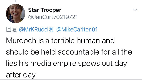 △网友:默多克这个人真是太糟糕了,他应该为他新闻集团日复一日地撒谎负责。