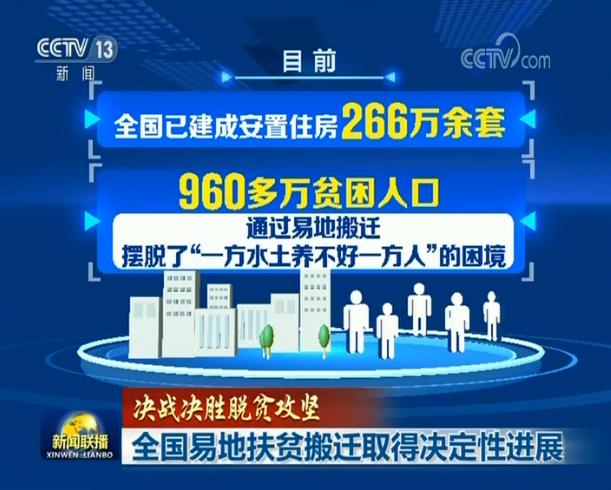 记者从国家发展改革委了解到,目前全国已建成安置住房266万余套,960多万贫困人口通过异地搬迁摆脱了“一方水土养不好一方人”的困境。今年以来,中央又印发《2020年易地扶贫搬迁后续扶持若干政策措施》,明确了25项后续扶持具体政策措施,建立了安置区“扫尾”工程定期调度挂牌督战机制,督促四川凉山州、云南怒江州、昭通市等地全面扫尾、加快入住。协调安排地方政府一般债务规模264亿元、中央财政扶贫资金48亿元,用于易地扶贫搬迁后续扶持。