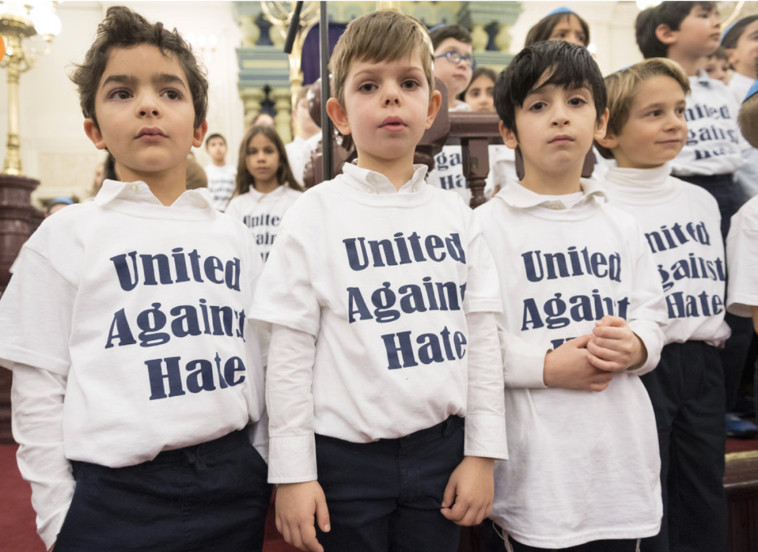 联合国图片丨穿着“团结起来反对仇恨”T恤的孩子们