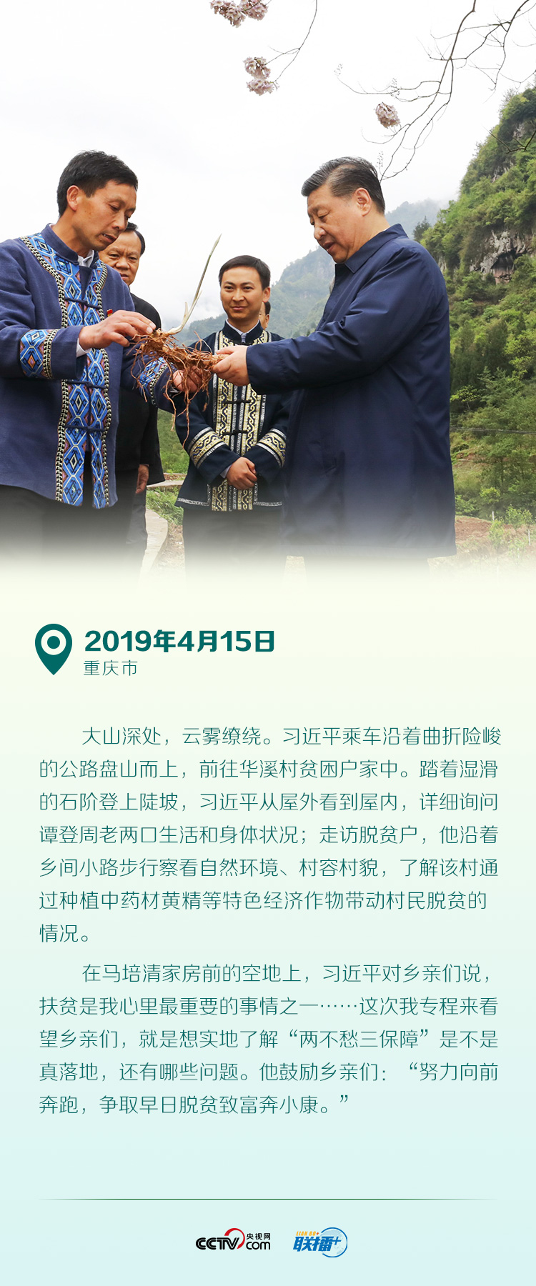 一年来,为确保脱贫攻坚任务如期完成,习近平先后赴重庆、江西、内蒙古等省区市考察调研,同贫困群众一起拉家常、算收支、想办法……