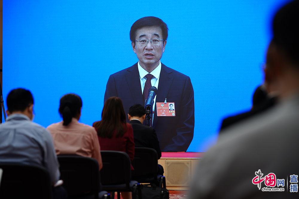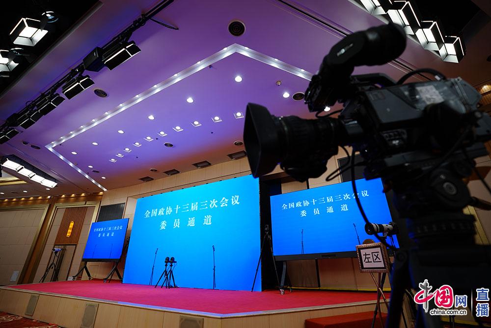 5月21日,全国政协十三届三次会议首场“委员通道”采访活动在人民大会堂新闻发布厅举行。邀请部分全国政协委员通过网络视频方式接受媒体采访。中国网 杨佳摄影