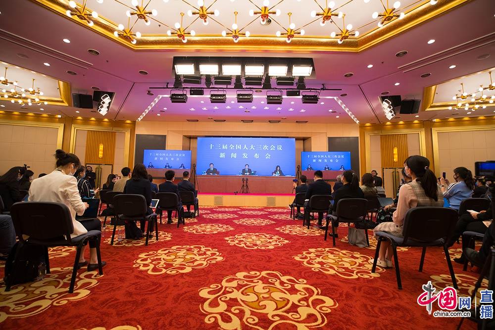 十三届全国人大三次会议于5月21日(星期四)21时40分在人民大会堂新闻发布厅举行新闻发布会,由大会发言人张业遂就大会议程和人大工作相关问题回答中外记者提问。 中国网张若梦摄影