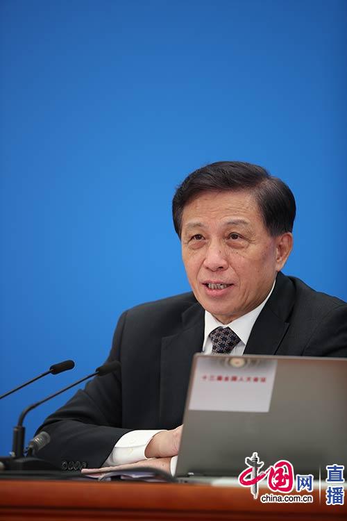 大会发言人张业遂就大会议程和人大工作相关问题回答中外记者提问。中国网杨佳摄影