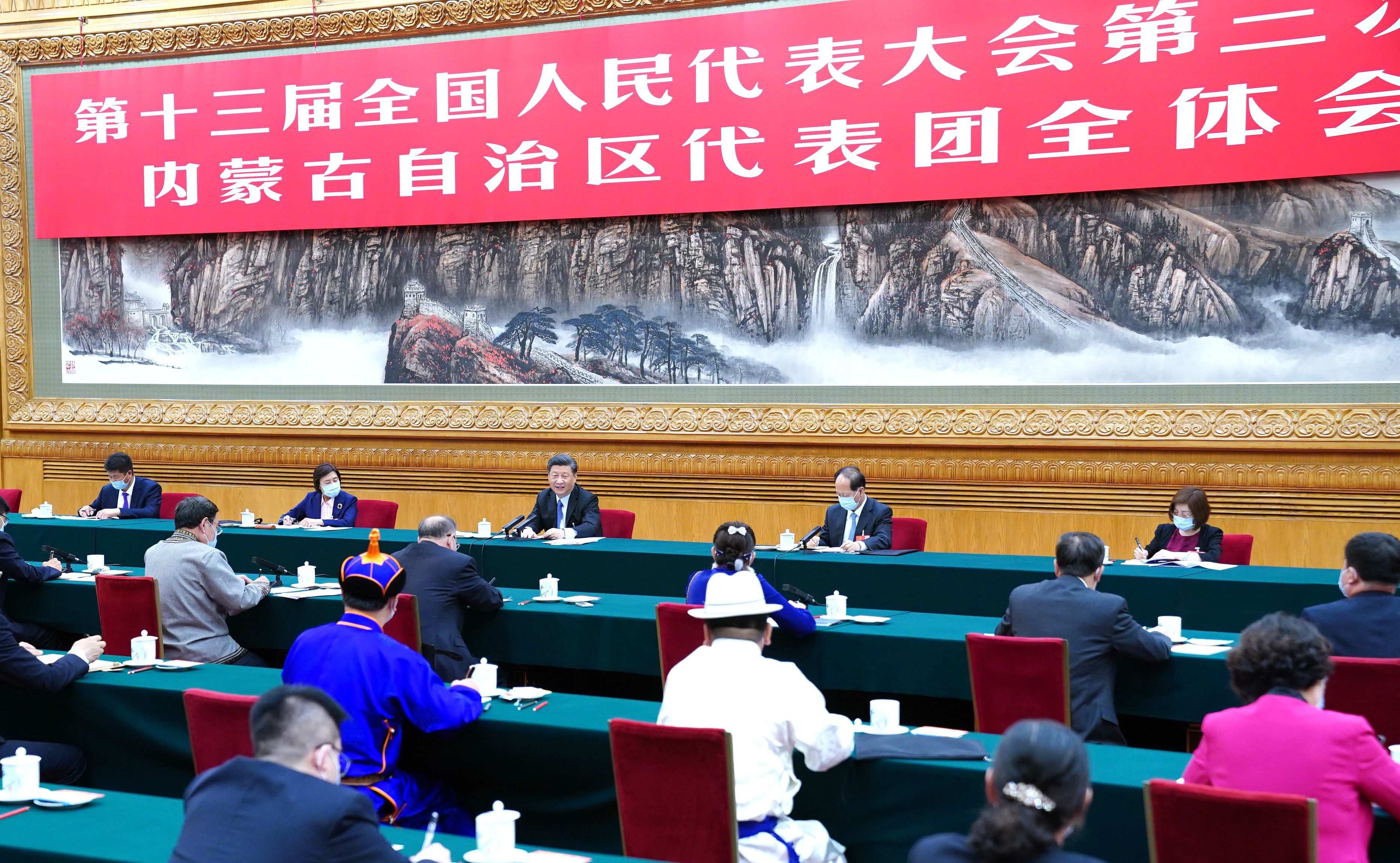 在认真听取大家发言后,习近平作了发言。他首先表示完全赞成政府工作报告,充分肯定内蒙古一年来的工作,希望内蒙古的同志大力弘扬“蒙古马精神”,坚决贯彻党中央决策部署,坚持以人民为中心的发展思想,坚持稳中求进工作总基调,坚持新发展理念,坚决打好三大攻坚战,扎实做好“六稳”工作,全面落实“六保”任务,坚决克服疫情带来的不利影响,确保完成决胜全面建成小康社会、决战脱贫攻坚目标任务,在新时代全面建设社会主义现代化国家征程上书写内蒙古发展新篇章。