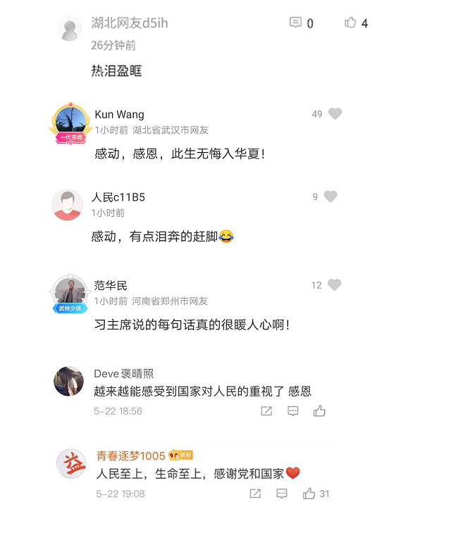 许多网友回应:“越来越感觉到国家对人民的重视了”“真的很骄傲,在我们国家人民群众永远是最重要的”“人民的力量是无穷的”……