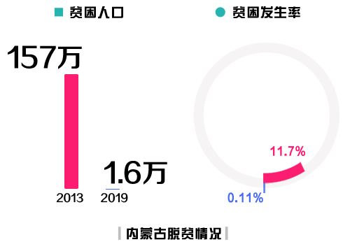 2020年是脱贫攻坚决战决胜之年。经过党的十八大以来7年多的艰苦努力,内蒙古脱贫工作取得了决定性进展,贫困人口从2013年的157万人减少到2019年的1.6万人,贫困发生率由11.7%下降到0.11%,所有贫困旗县和贫困嘎查村全部摘帽出列,区域性整体贫困得到解决。目前,正在全力完成剩余脱贫攻坚任务、巩固脱贫成果。