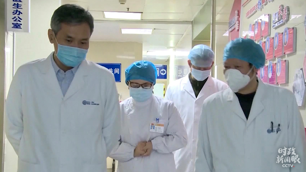 △疫情暴发后,罗杰(左一)带领十堰市救治专家组奋战在抗疫最前线,“吃住不离院”。