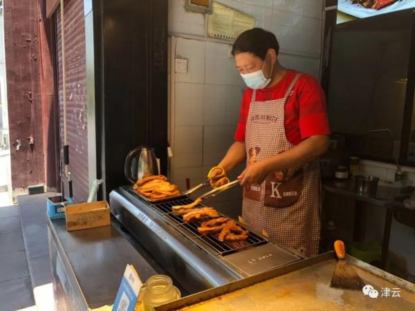 “买两根送一根,不好吃全额退款。”一大早,在户部巷商业街开店的关大叔就起来腌排骨了,他在户部巷开店12年,现在专门卖烤排骨。他说,别看排骨只是简单的烤一烤,真正吃功夫的是准备的腌料。在酒店当过大厨的关师傅对于腌料十分讲究,“这排骨得提前12小时腌,早上还得炸出来,有客人来了,才现烤出来,这才能保证色香味俱全”。他熟练用剪刀剪开排骨,撒上孜然和麻辣粉,再刷上蘸料。他拿起自己放腌料的桶给远道而来的黄小姐闻了闻,对方竖起了大拇指:“香!”烤的过程中,有路人循香而来,他不忘重复自己的广告语:“不好吃全额退款。”