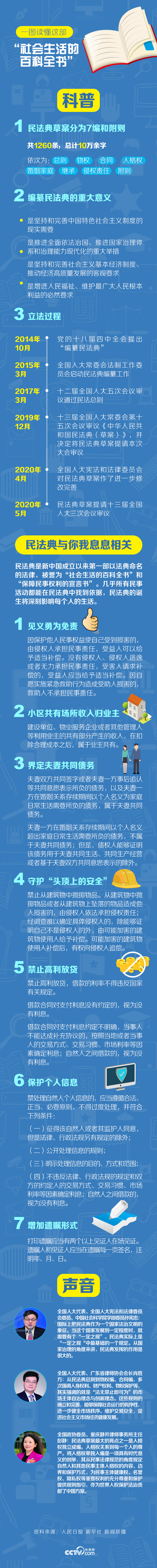 5月22日,《中华人民共和国民法典(草案)》提请十三届全国人大三次会议审议。民法典呼之欲出,我国民事权利保护即将进入法典时代。这部历经几十年、凝聚几代人心血编纂的法典,和每个人的生活息息相关,其重要性不言而喻。央视网特梳理其亮点,与您一起读懂这部“社会生活的百科全书”。