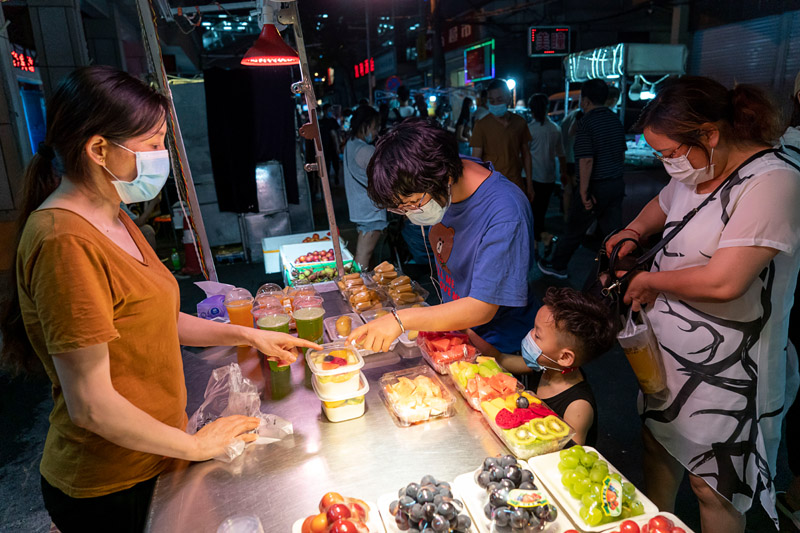 6月1日,市民在武汉保成路夜市消费休闲。新华社记者 熊琦 摄