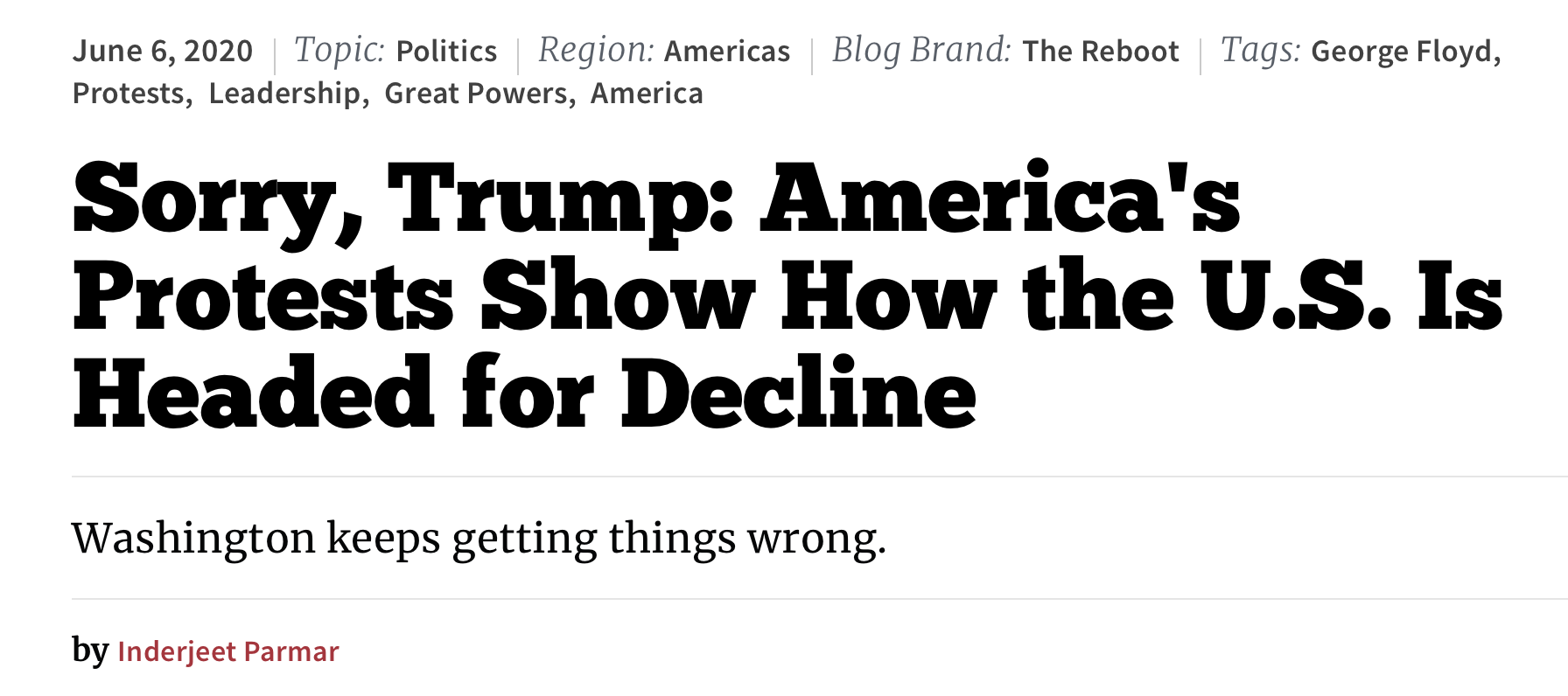 文章称,美国为保护自身在竞争中的地位而对盟友、竞争对手和国际机构采取越来越强硬的态度,这是一种长期的转变,“美国优先”的做法已经系统性地强化到了前所未见的高度。