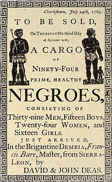 △贩卖奴隶的广告:新到39名男性黑奴、15名少年黑奴、24名女性黑奴、16名女童黑奴,以上奴隶均来自塞拉利昂。