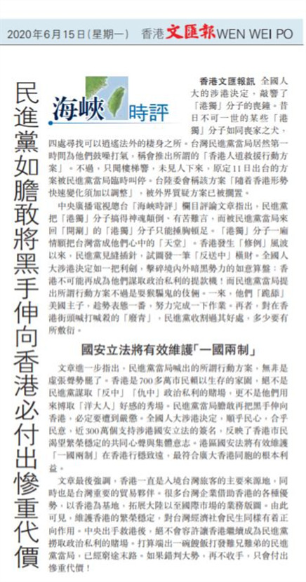 △香港《文汇报》6月15日刊发