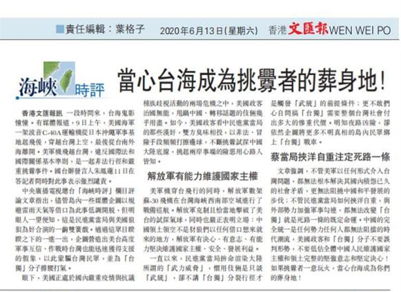 △香港《文汇报》6月13日刊发
