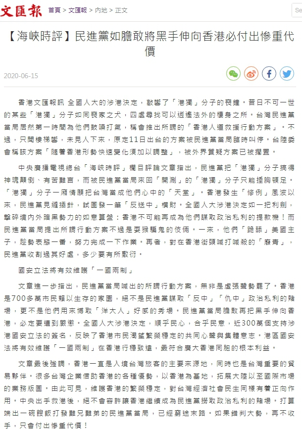 △香港文汇网6月15日刊发
