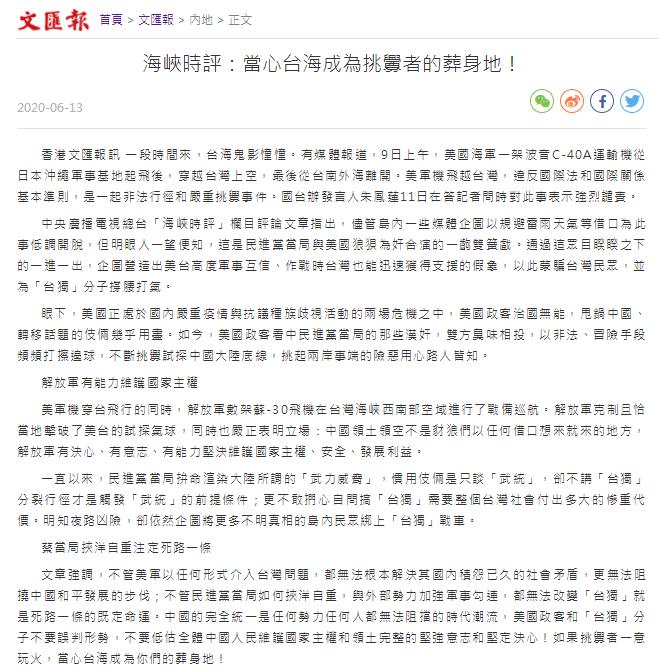 △香港文汇网6月12日刊发