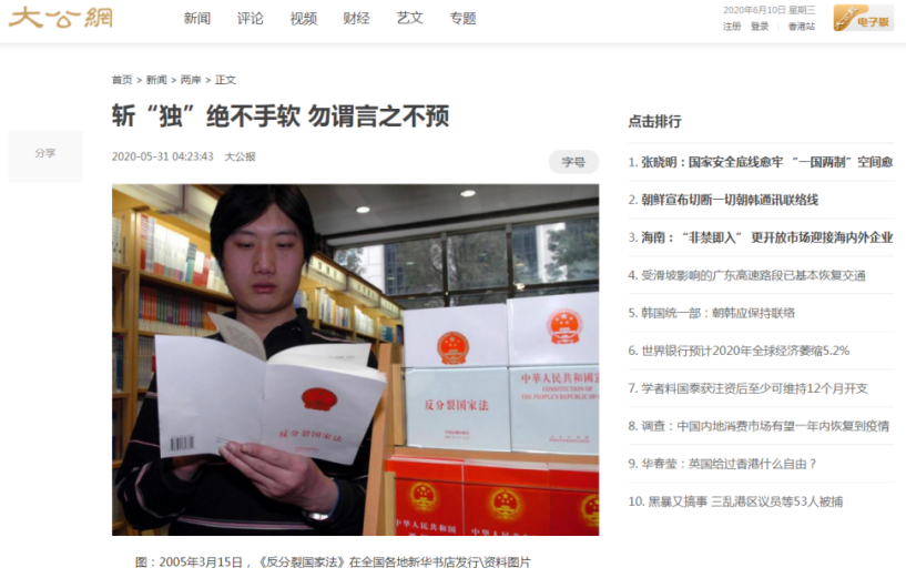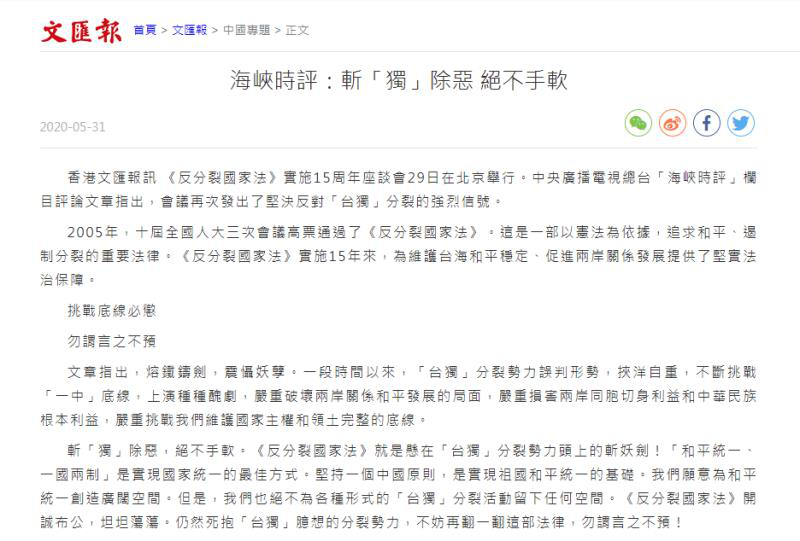 △香港文汇网5月31日刊发