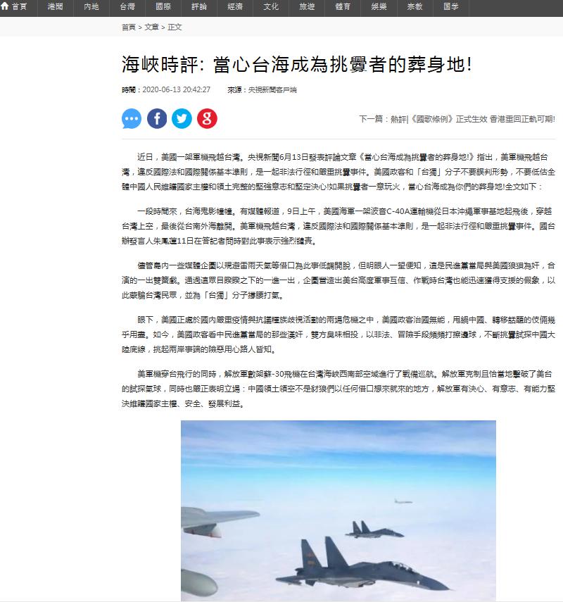 海外多家媒体关注总台《海峡时评》系列评论,全文转载,广泛传播。