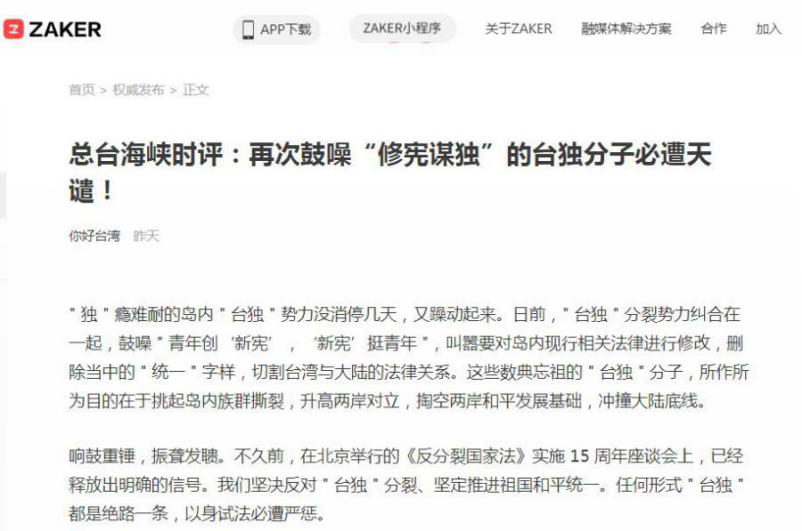 内地多家媒体纷纷转载总台《海峡时评》系列评论。
